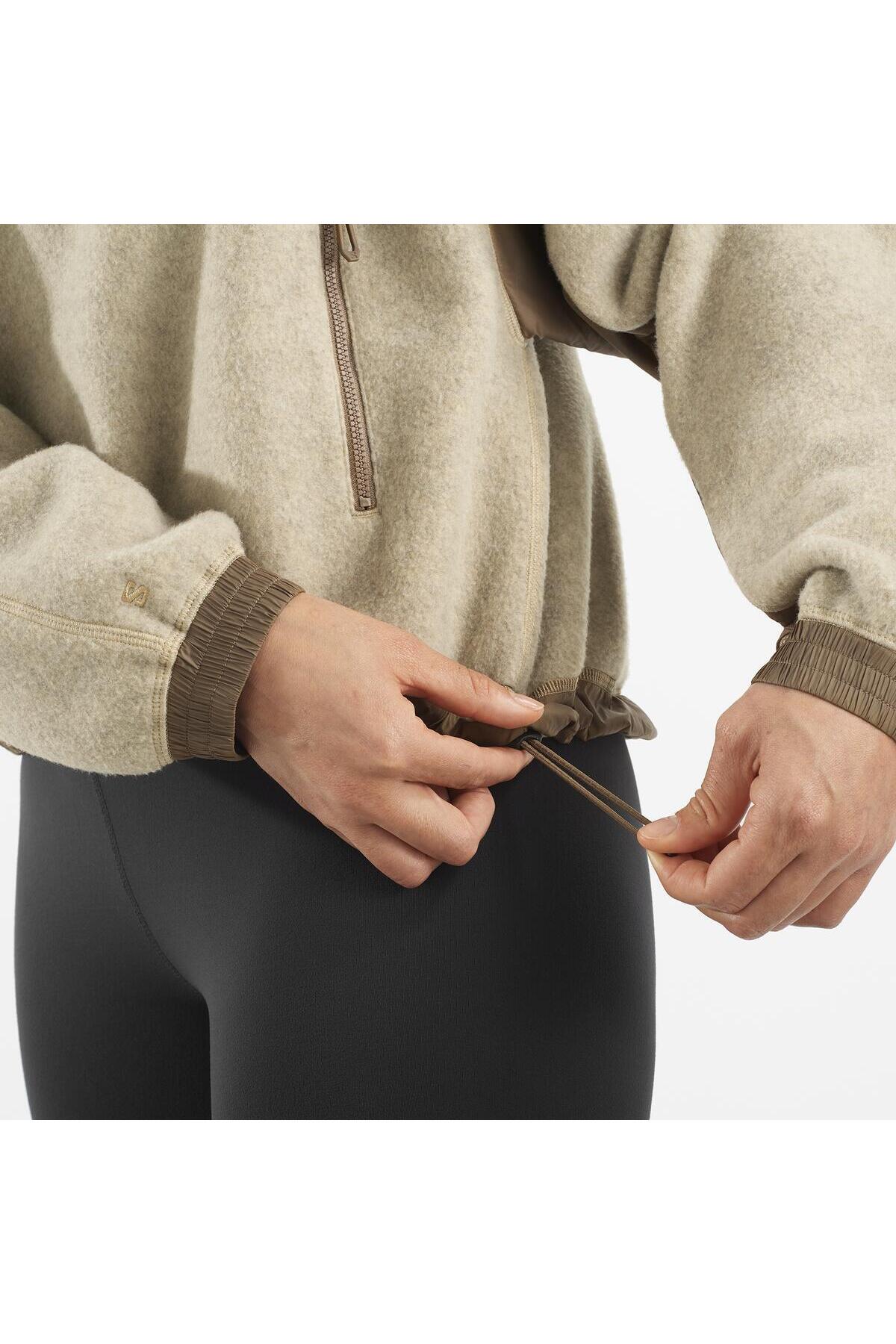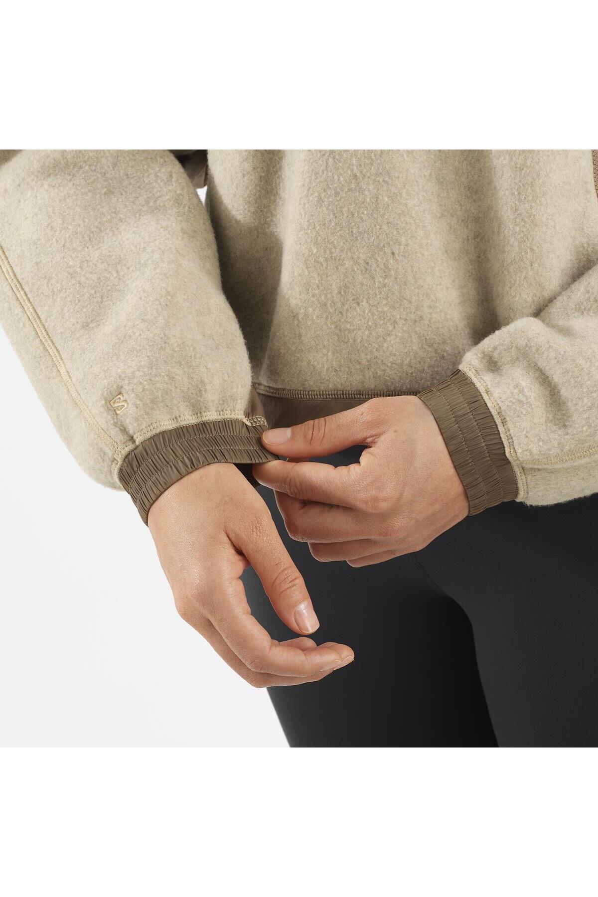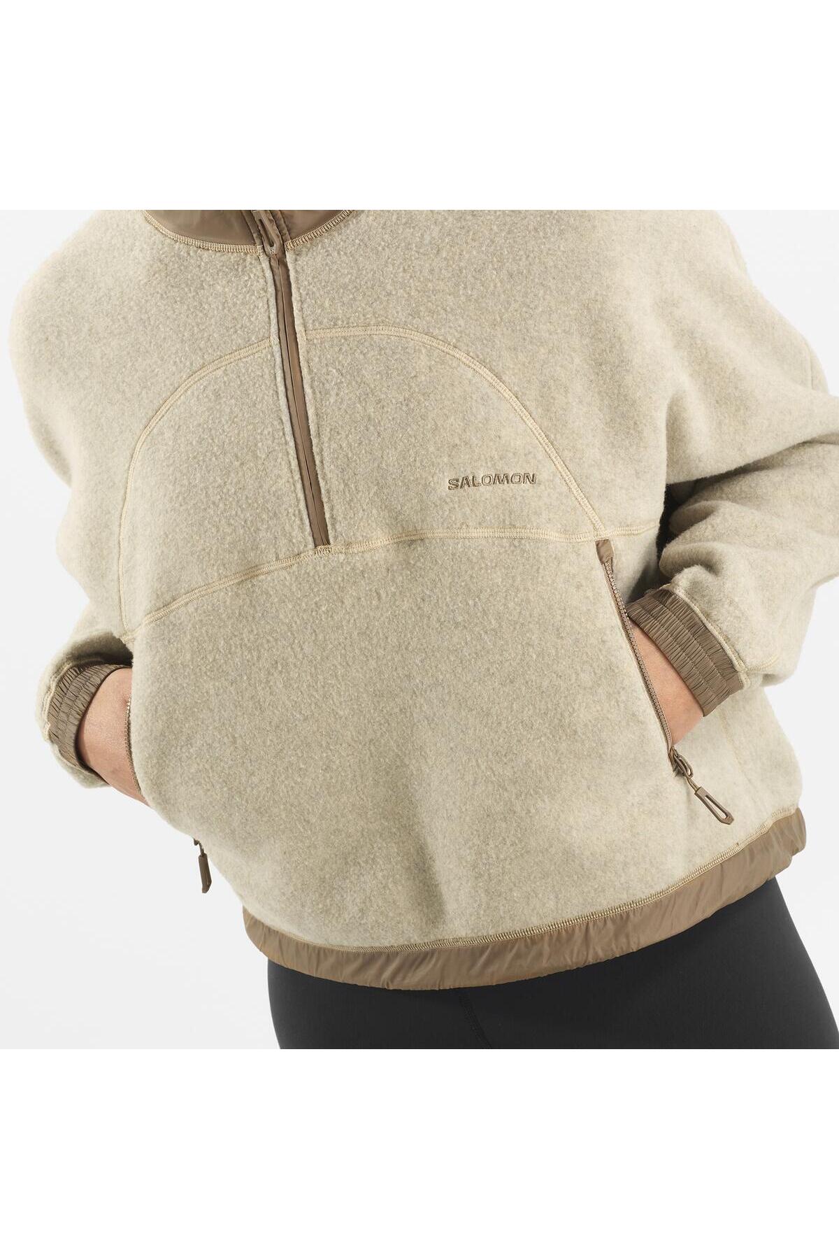 سالومون کاپشن پشمی نیم زیپ زنانه CHROMA مدل WHITE PEPPER SHITAKE LC2274000