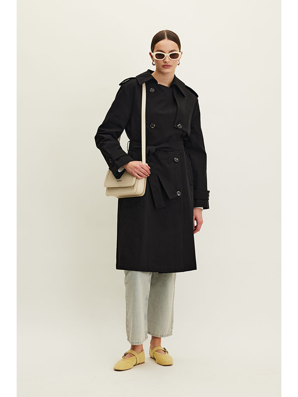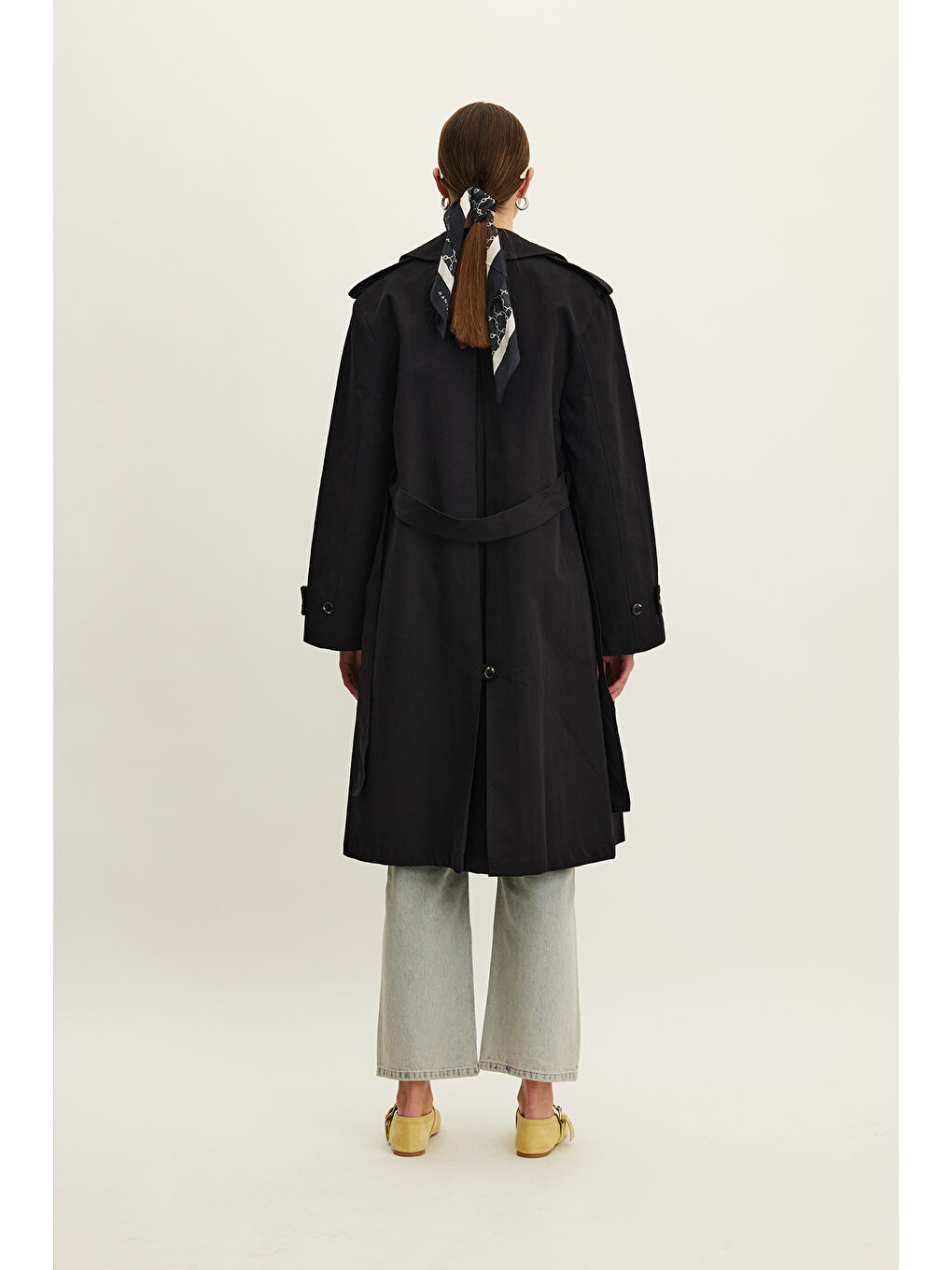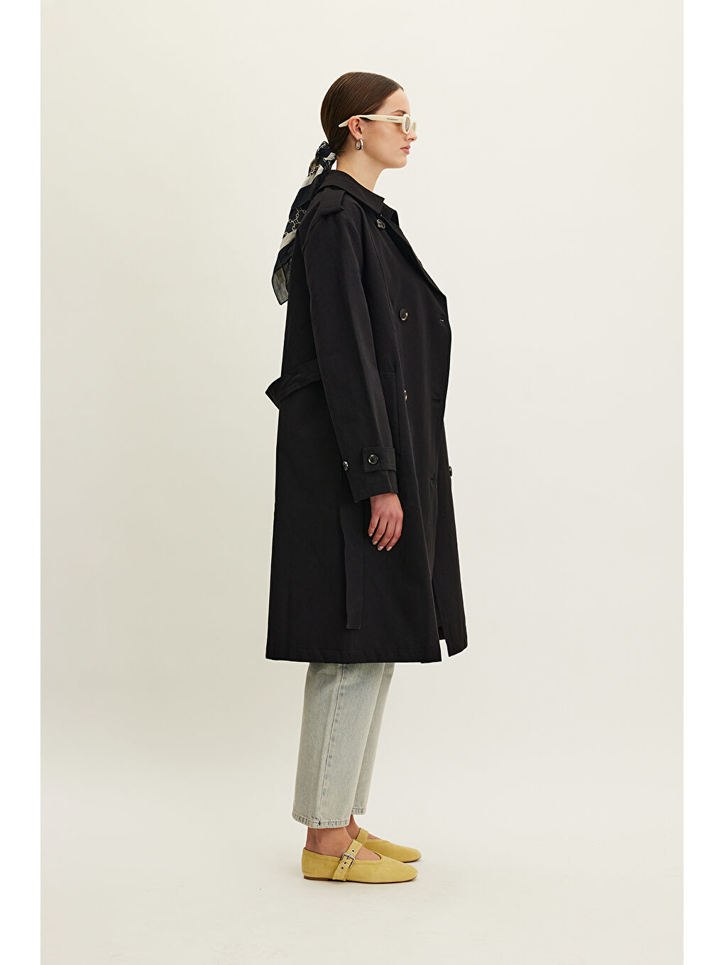 کت بارانی کمربنددار دو دکمه آنیکا مشکی
