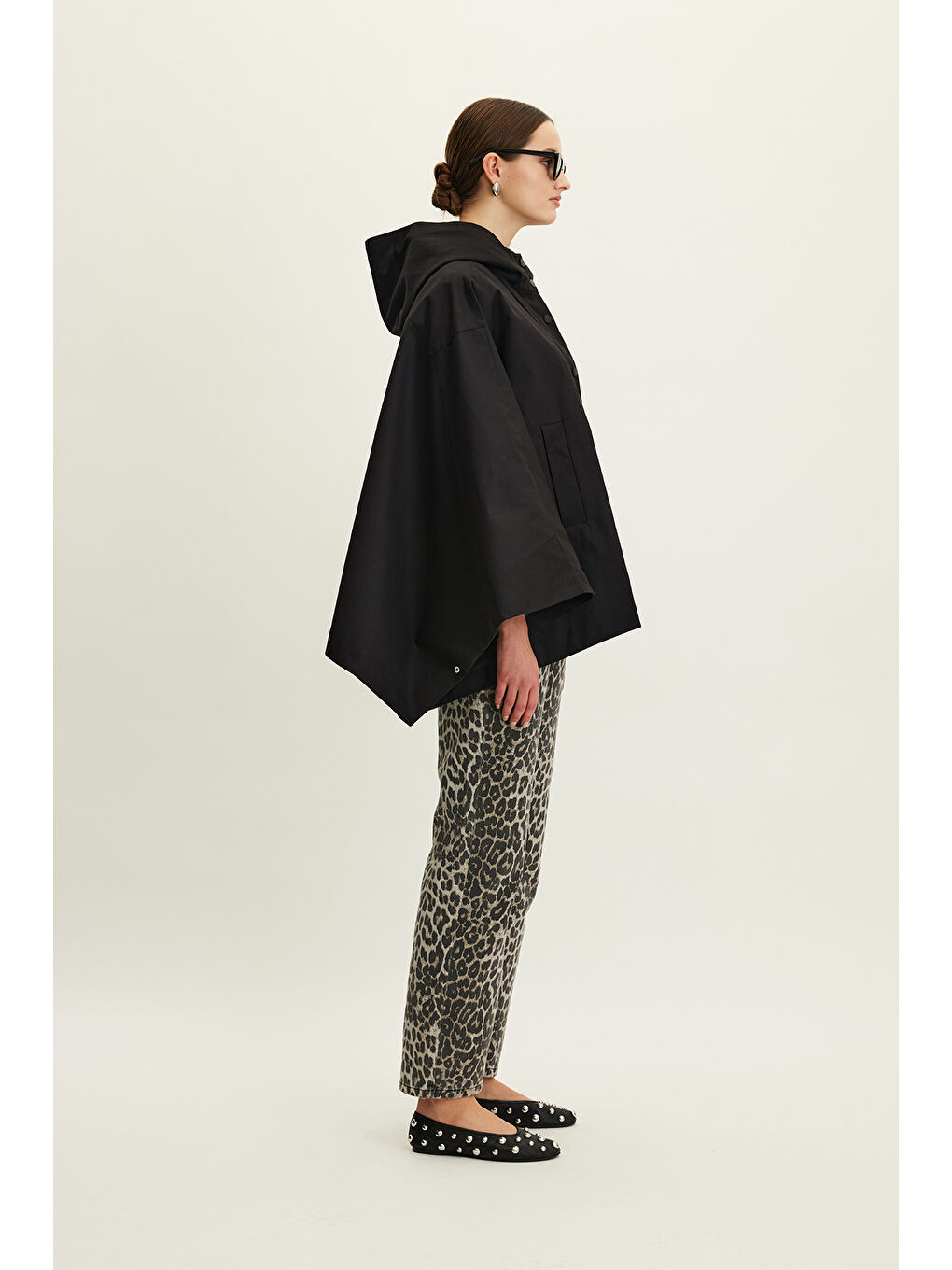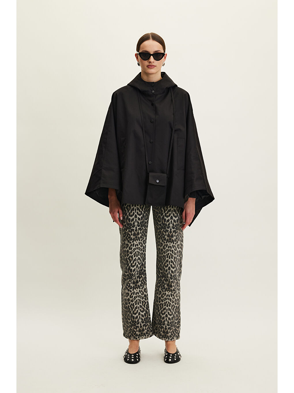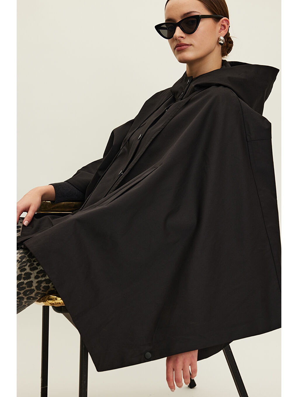 پالتوی بارانی کلاهدار، جزئیات کیف پارچهای، دکمه فشاری، جیبهای کناری، آستر