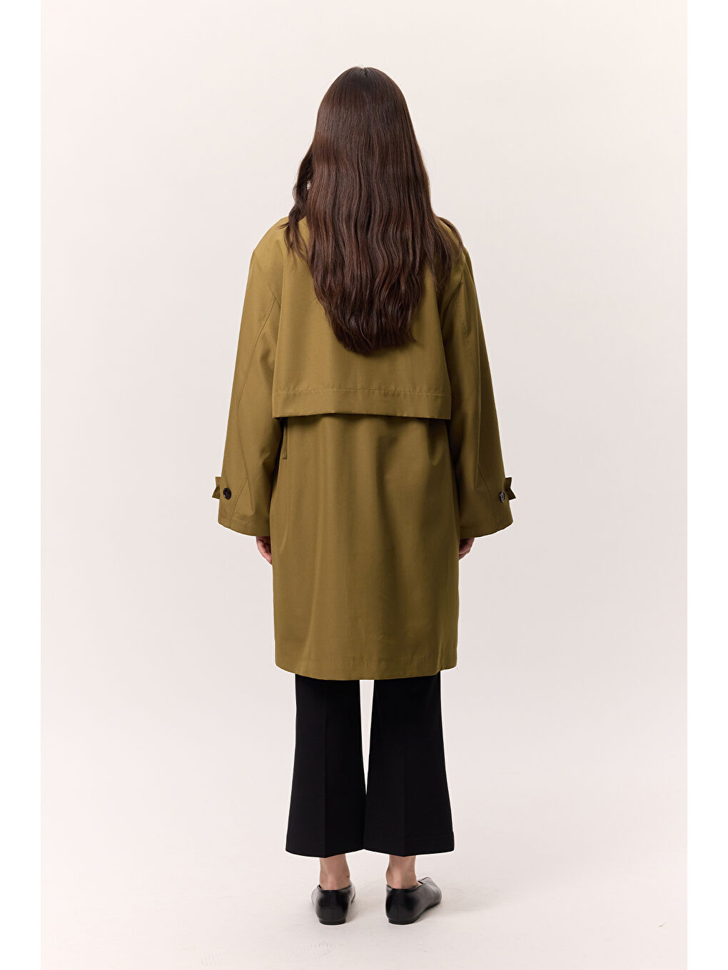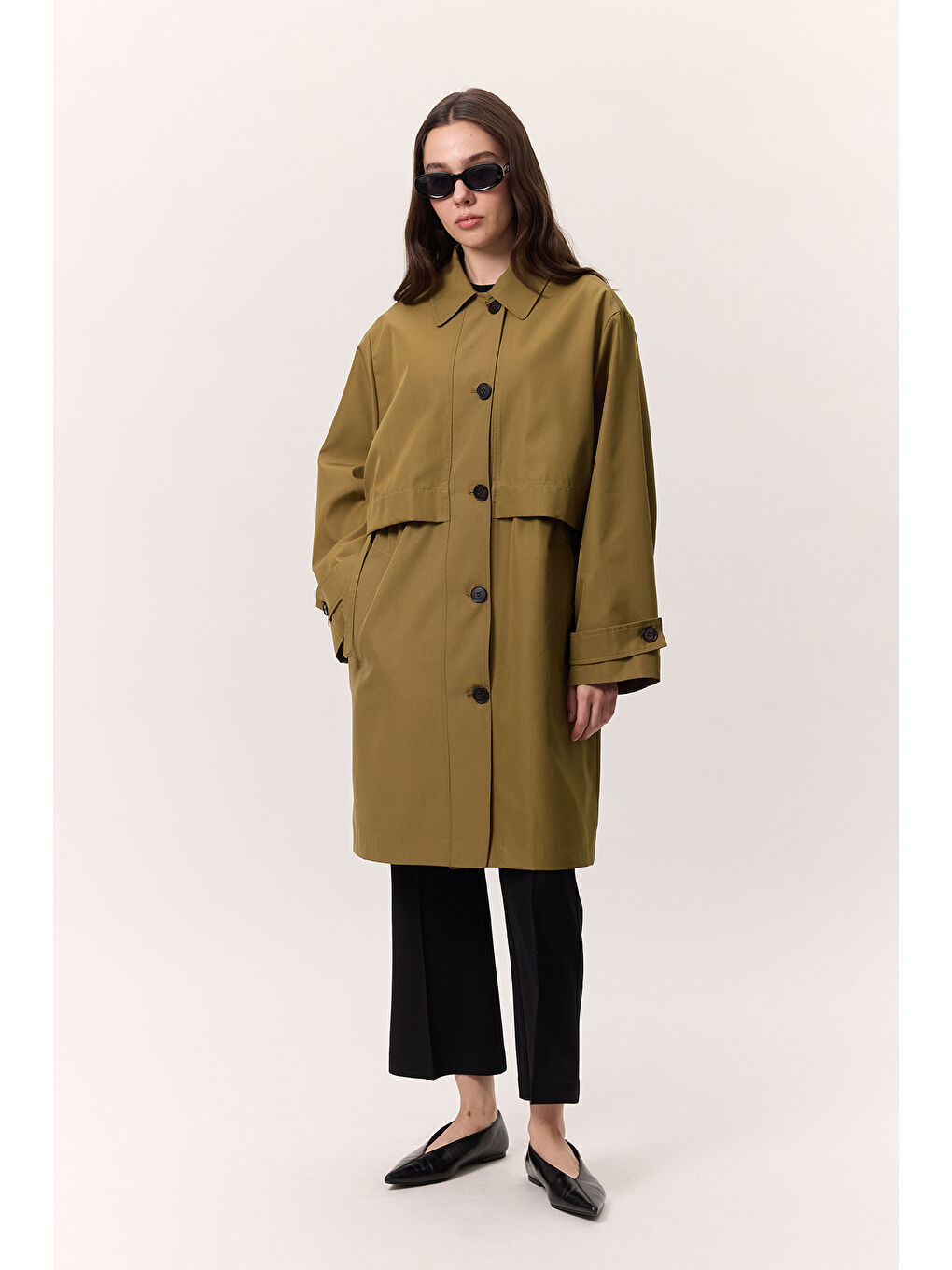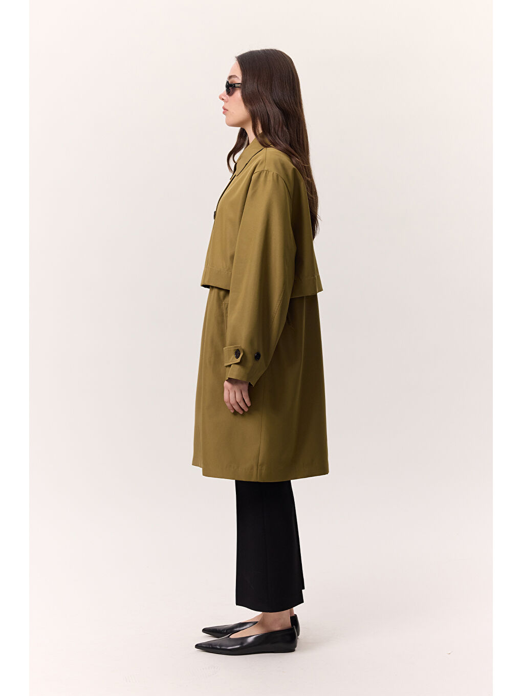 کت ترنچ سبک با کمر قابل تنظیم، سبز زیتونی