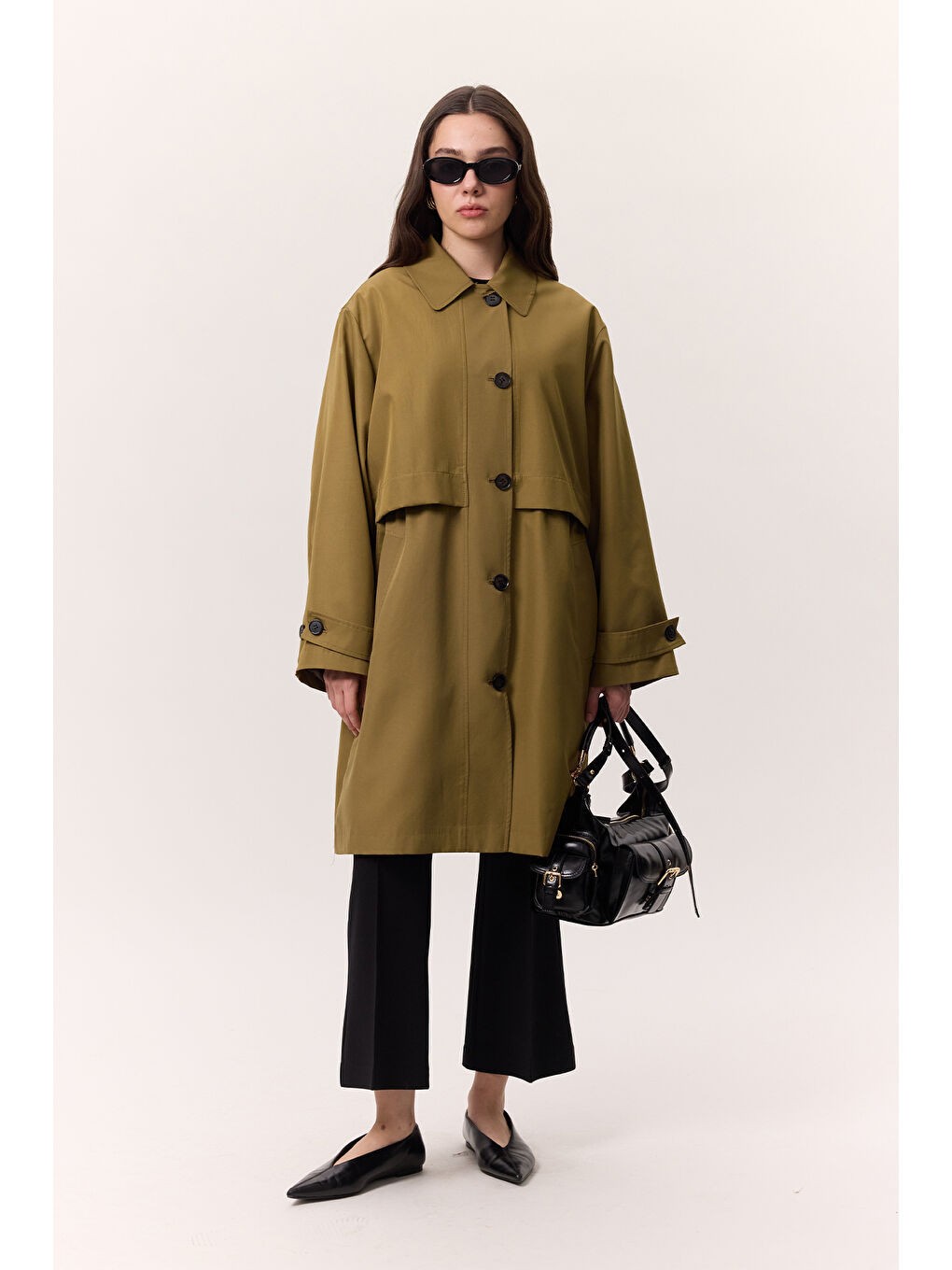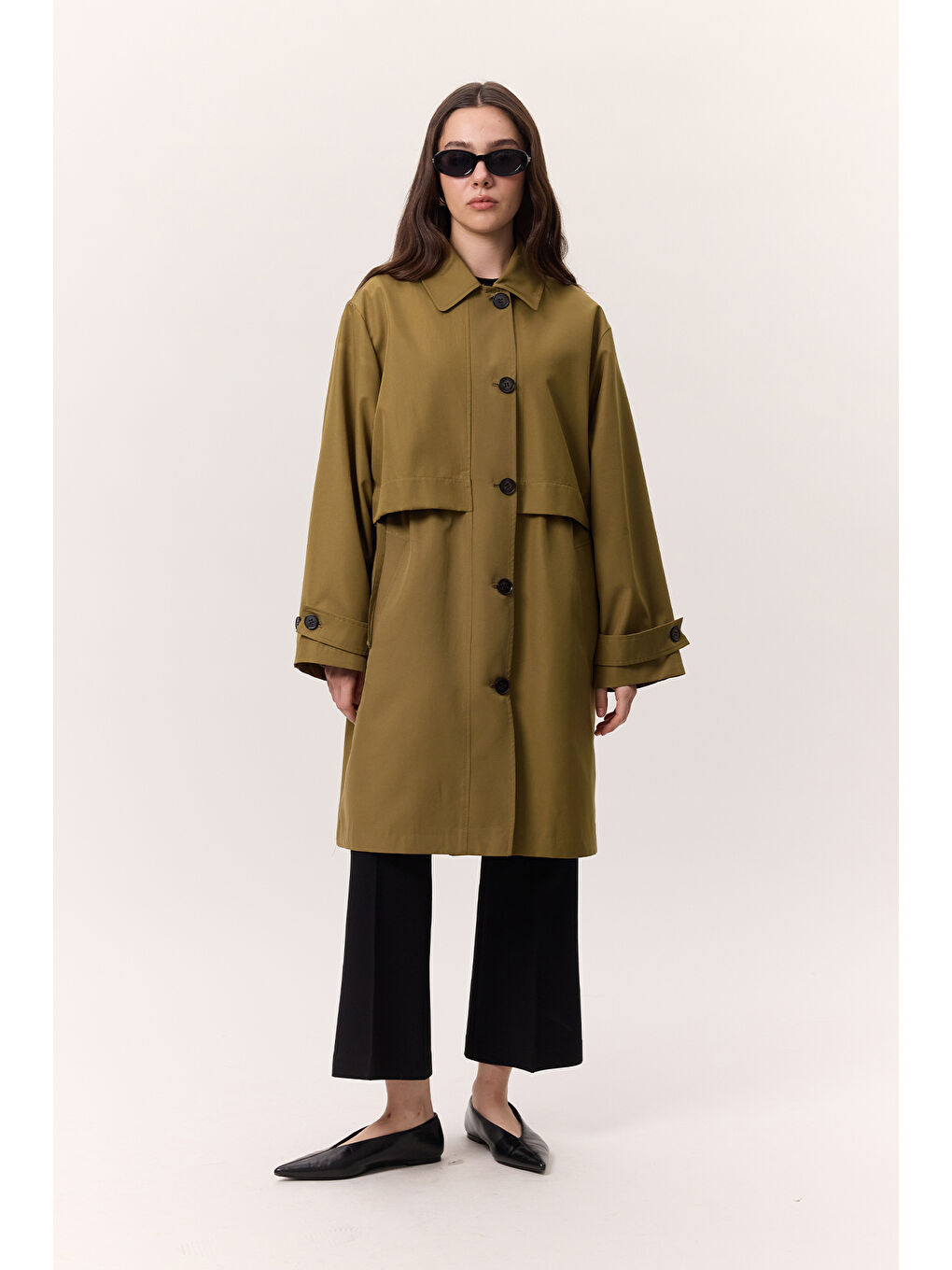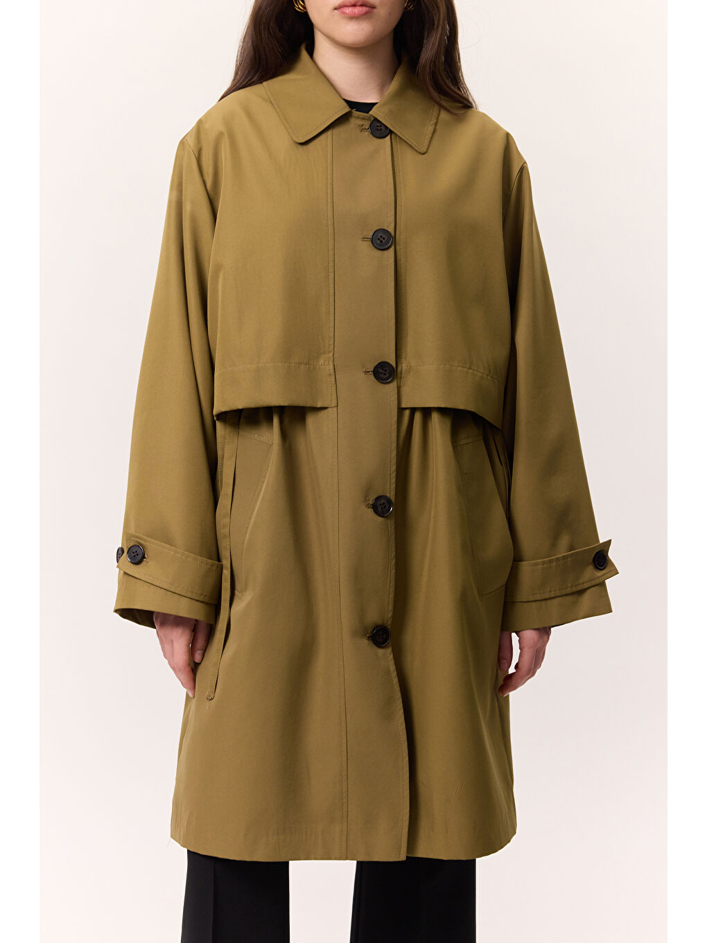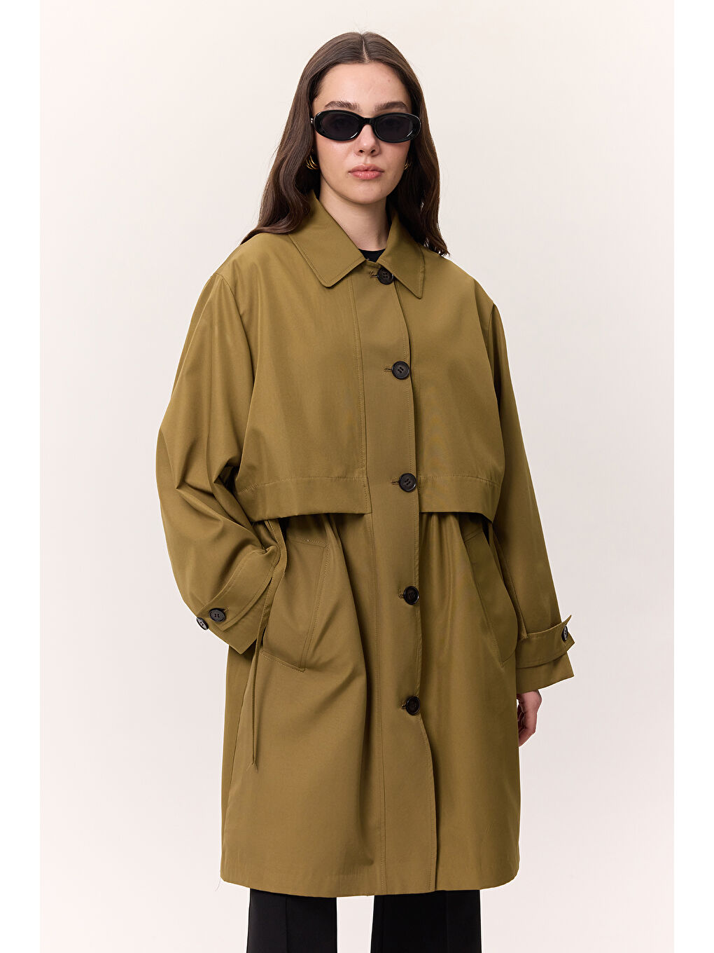 کت ترنچ سبک با کمر قابل تنظیم، سبز زیتونی