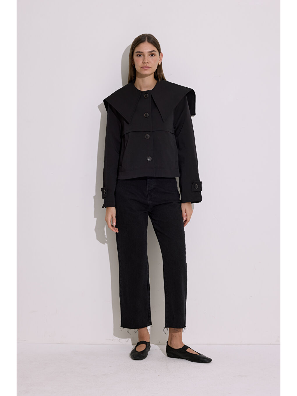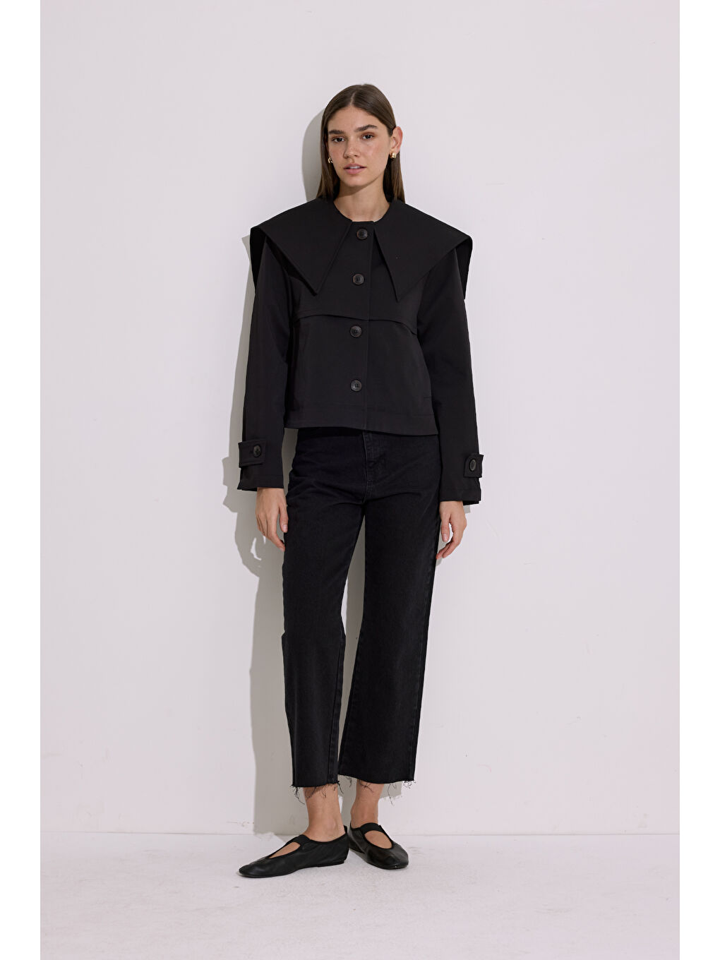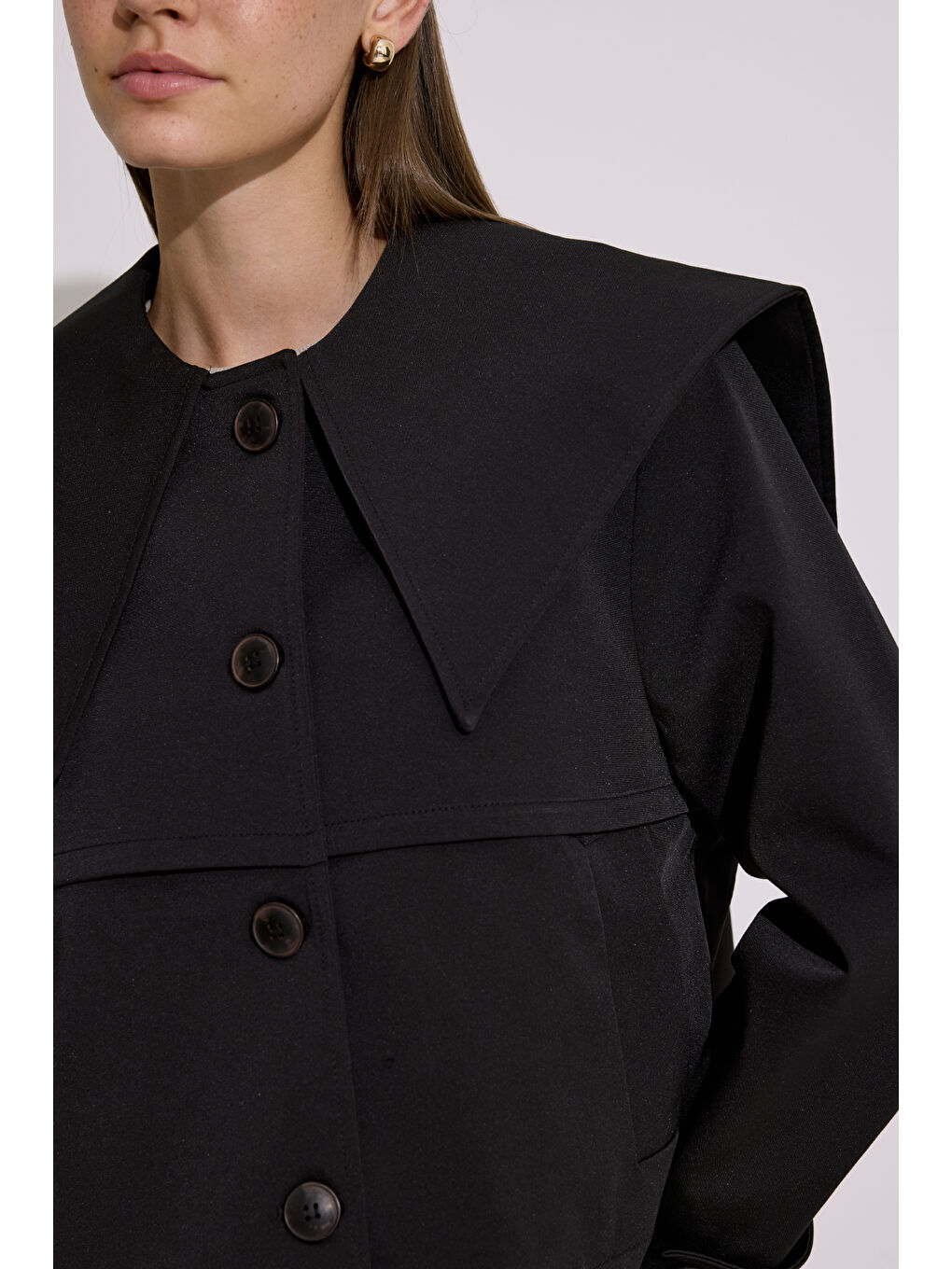 کت بارانی یقه پهن مشکی