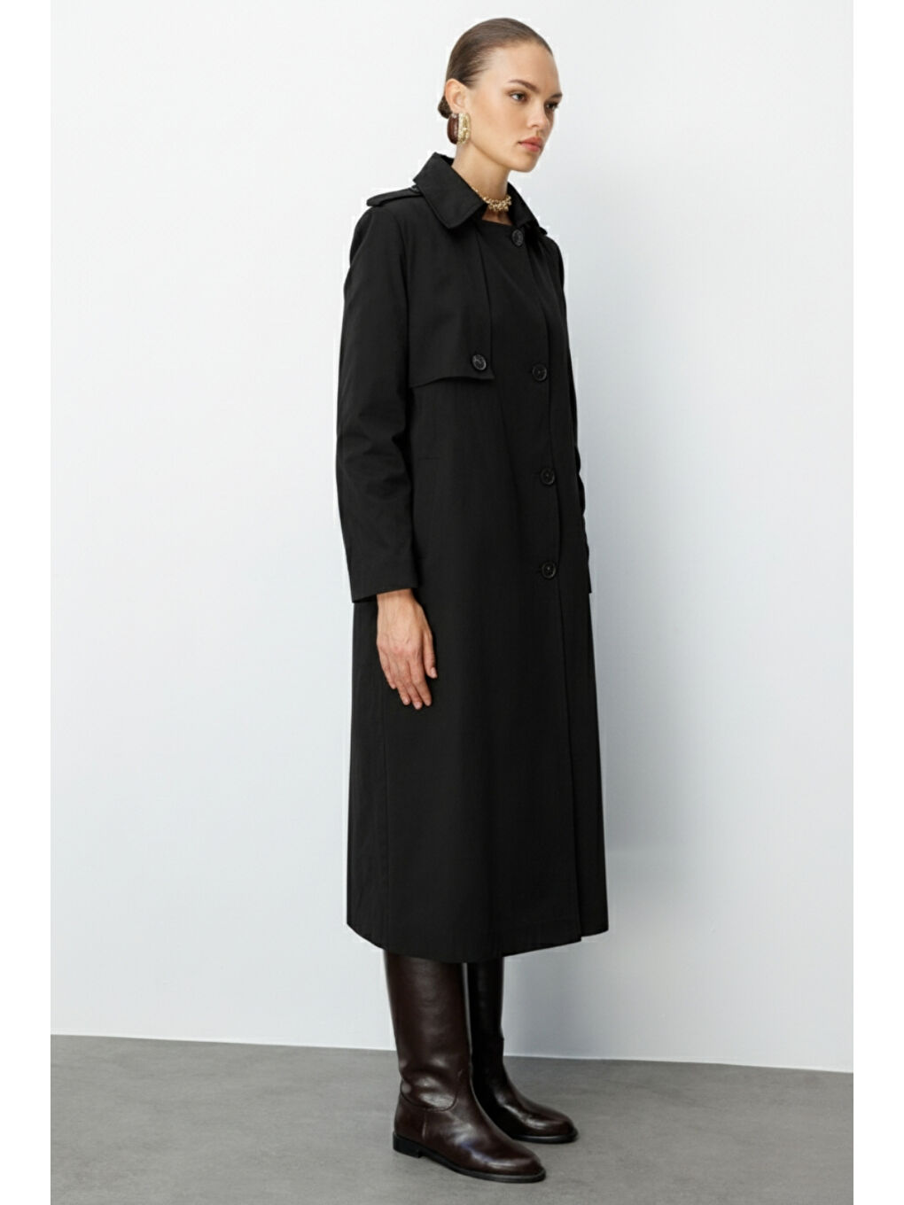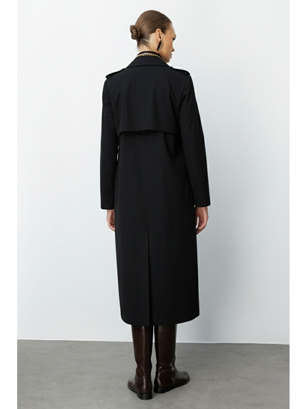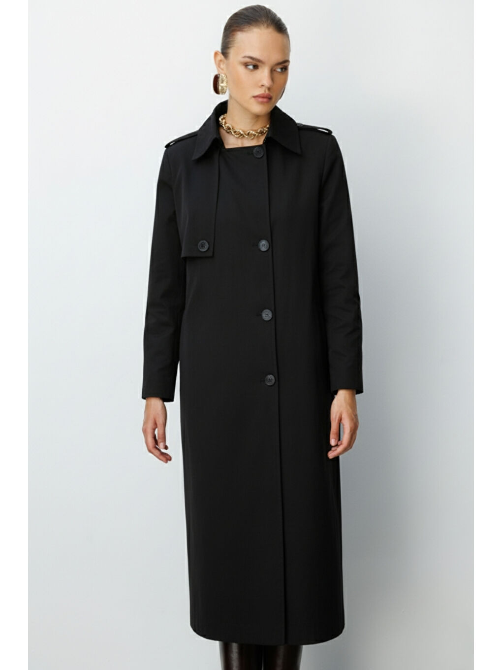 کت ترنچ مشکی کلاسیک ماکسی مک با یقه دکلته