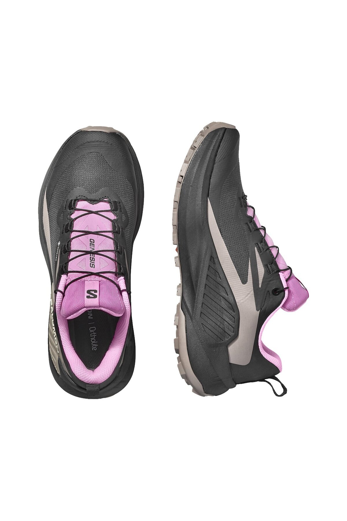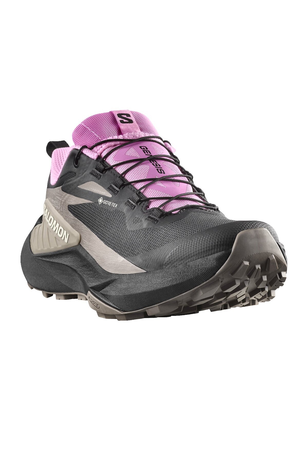 سالومون کفش‌های دویدن زنانه جنسیس گورتکس مشکی مخصوص پیاده‌روی، مخصوص دویدن در مسیرهای کوهستانی